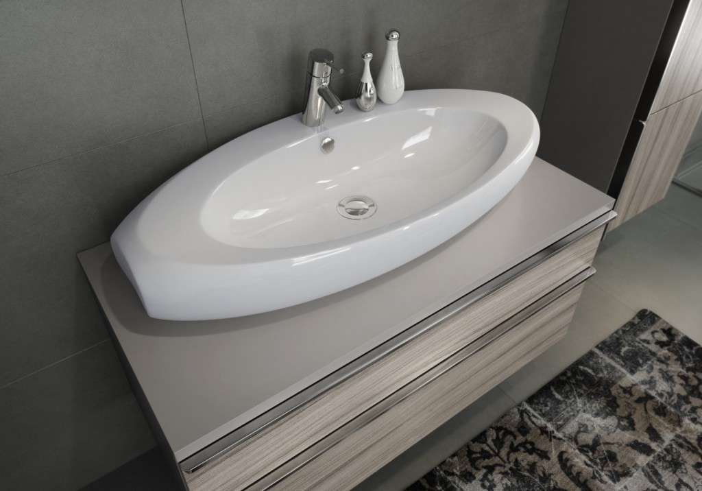 Nábytkové umyvadlo HIGH STREET s otvorem pro baterii a přepadem. Možnost montáže na desku nebo skříňku kolekce METROPOLITAN.
