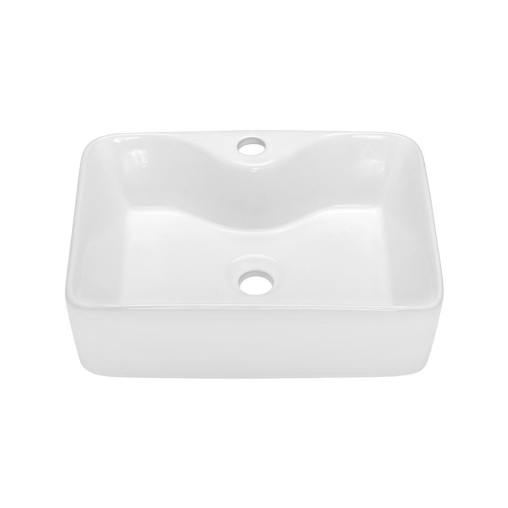 Neri je umyvadlo na desku s otvorem pro baterii. Módní, geometrický tvar dodá koupelně moderní ráz.
