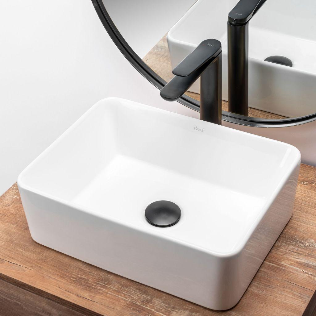 Moderní, jedinečné umyvadlo s bílou barvou a neobvyklým tvarem. Umyvadlo na desku Rea Anita Mini dodá vaší koupelně eleganci. Pokud se zaměříme na lesk této ušlechtilé barvy, konečný efekt jistě získá lehkost a originalitu. Umyvadlo Rea Anita Mini je přizpůsobeno pro montáž na desku nebo na skříňku. Bylo vyrobeno z vysoce kvalitní sanitární keramiky. Díky speciální fázi výroby je odolné a snadno se čistí.