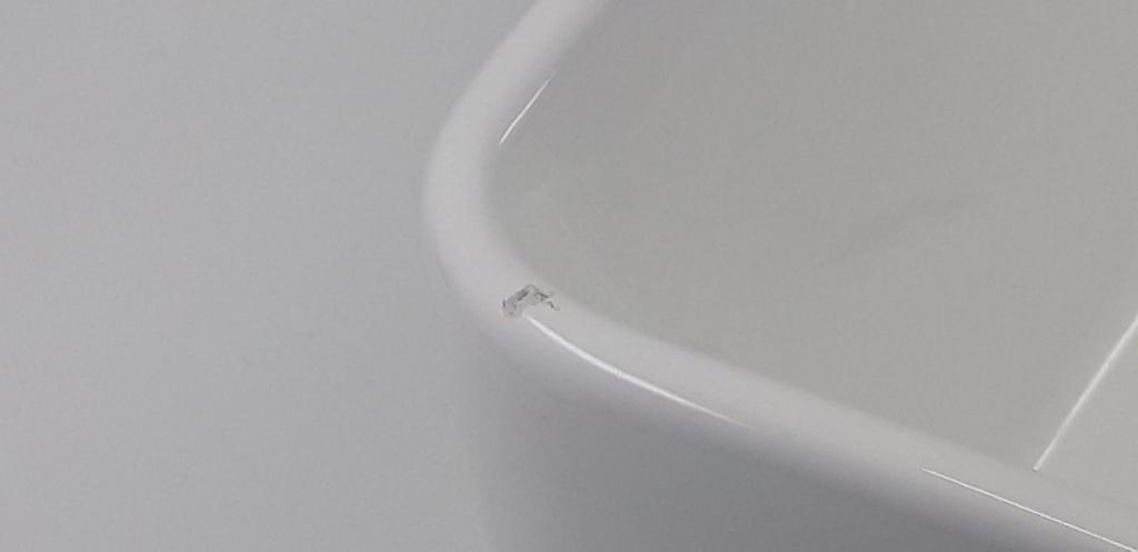 výrobní vada na horní hraně keramiky, více informací vady naleznete na fotografiích v galerii.