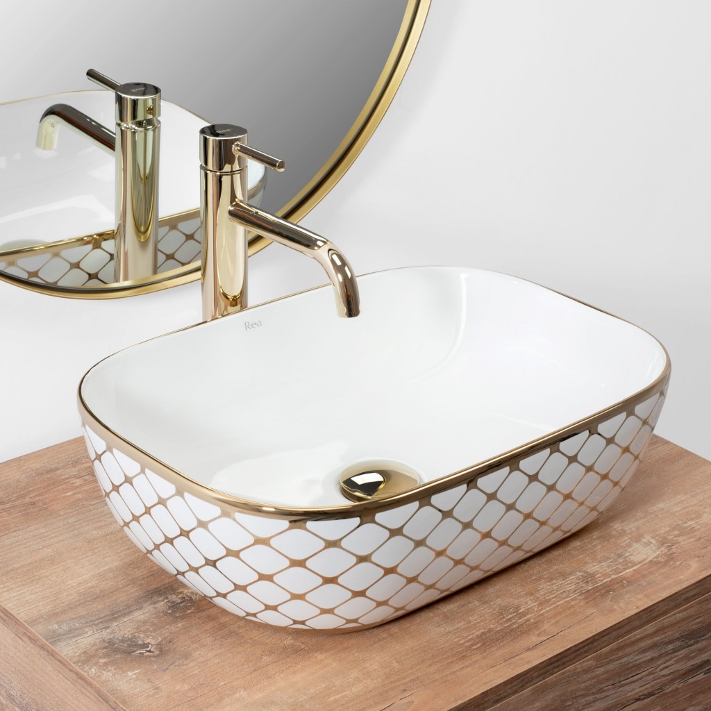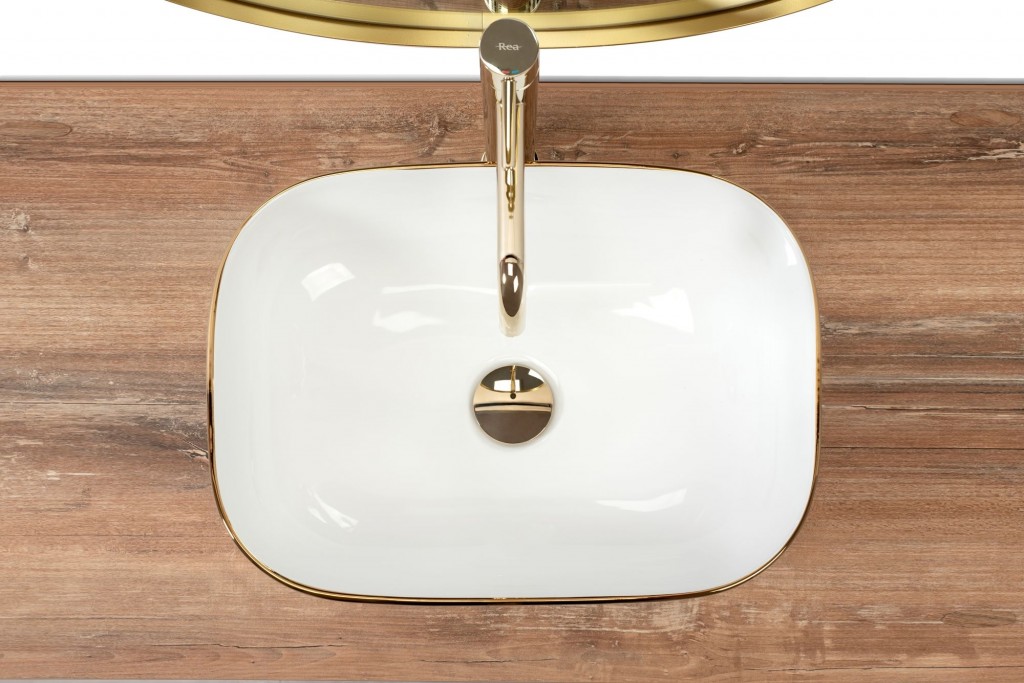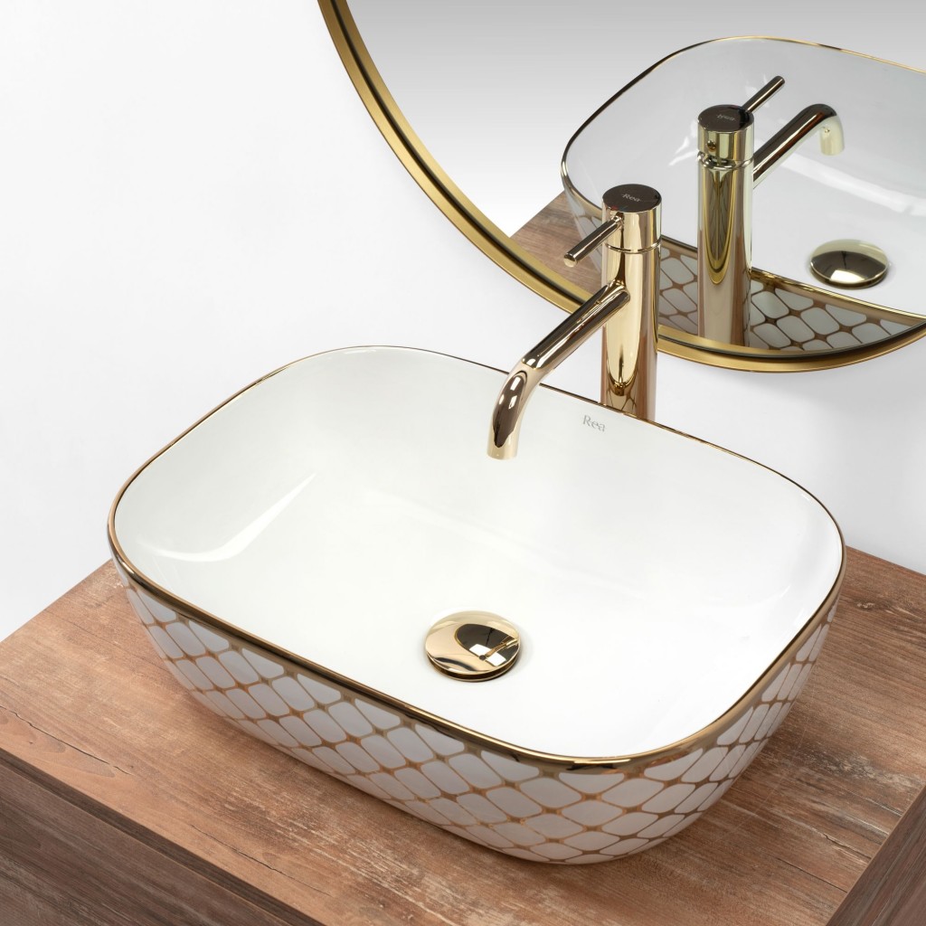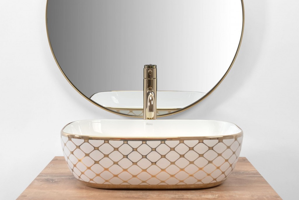 Umyvadlo Belinda vyrobené z vysoce kvalitních materiálů splní požadavky lidí, kteří oceňují kvalitu. Zajímavá a originální kombinace sněhově bílé zakončená zlatým lemem a diamantovým vzorem. Díky harmonickým liniím se bude skvěle hodit ke každému stylu, modernímu i klasickému.