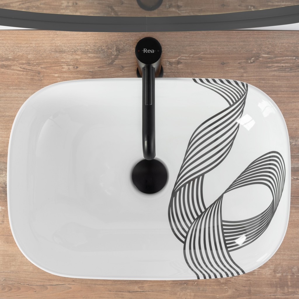Krásné, mimořádně funkční a moderní umyvadlo na desku Rea Belinda Sash dokonale vyplní prostor vaší koupelny při zachování dokonalého vzhledu a estetiky interiéru. Umyvadlo je uzpůsobeno k montáži na desku nebo skříňku. Bylo vyrobeno z vysoce kvalitní sanitární keramiky, díky speciální výrobní fázi je odolné a snadno se čistí.