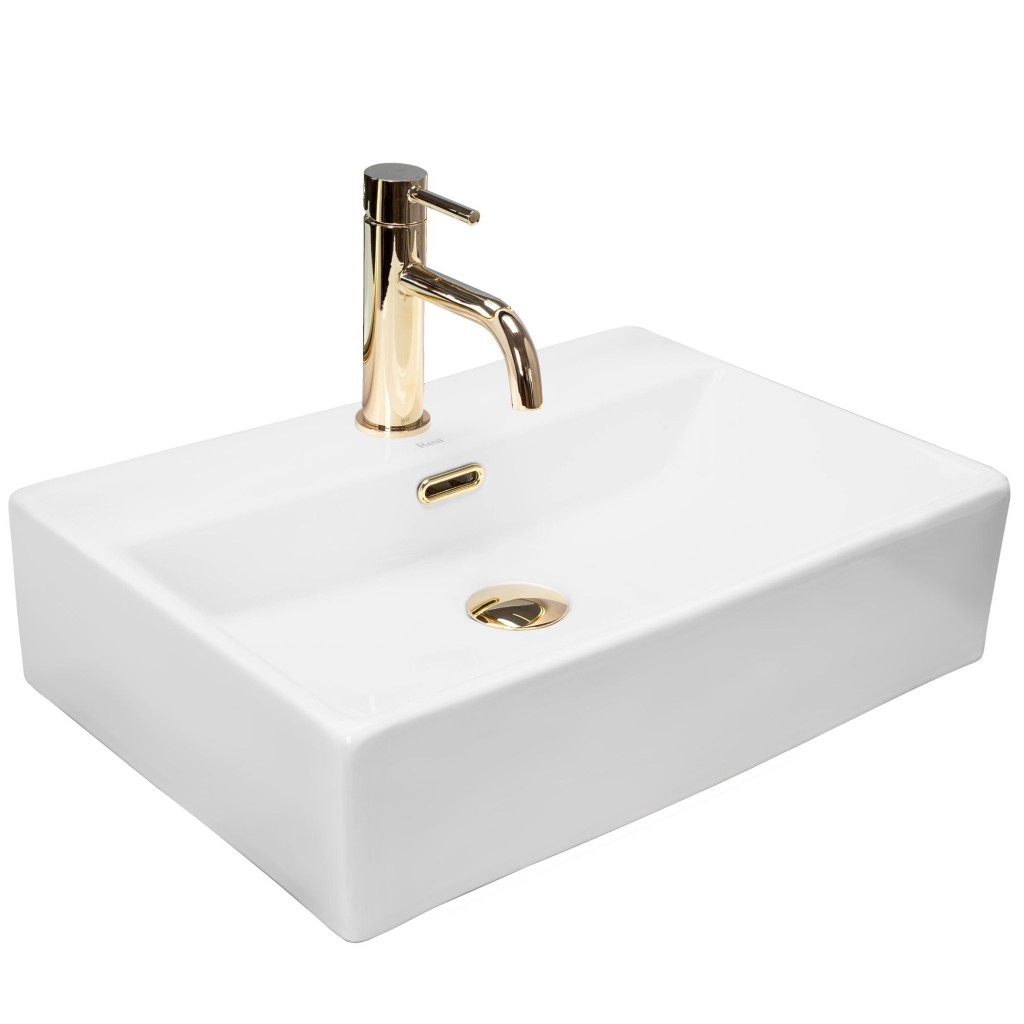 K umyvadlu Bonita můžete díky zlaté barvě přepadové krytky zvolit nízkou baterii Storm nebo Lungo, a kombinovat se zlatou výpustí.