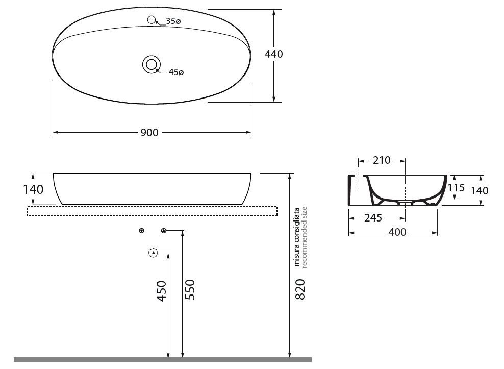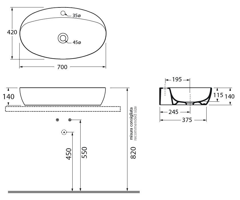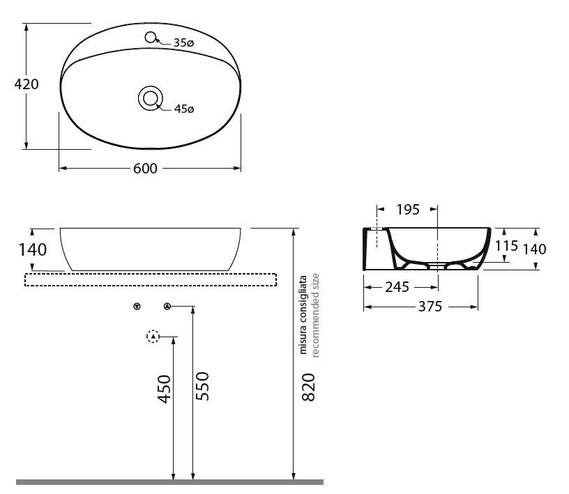Rozměry umyvadel na desku CIRCLE 2:- 60 × 42 × 14 cm