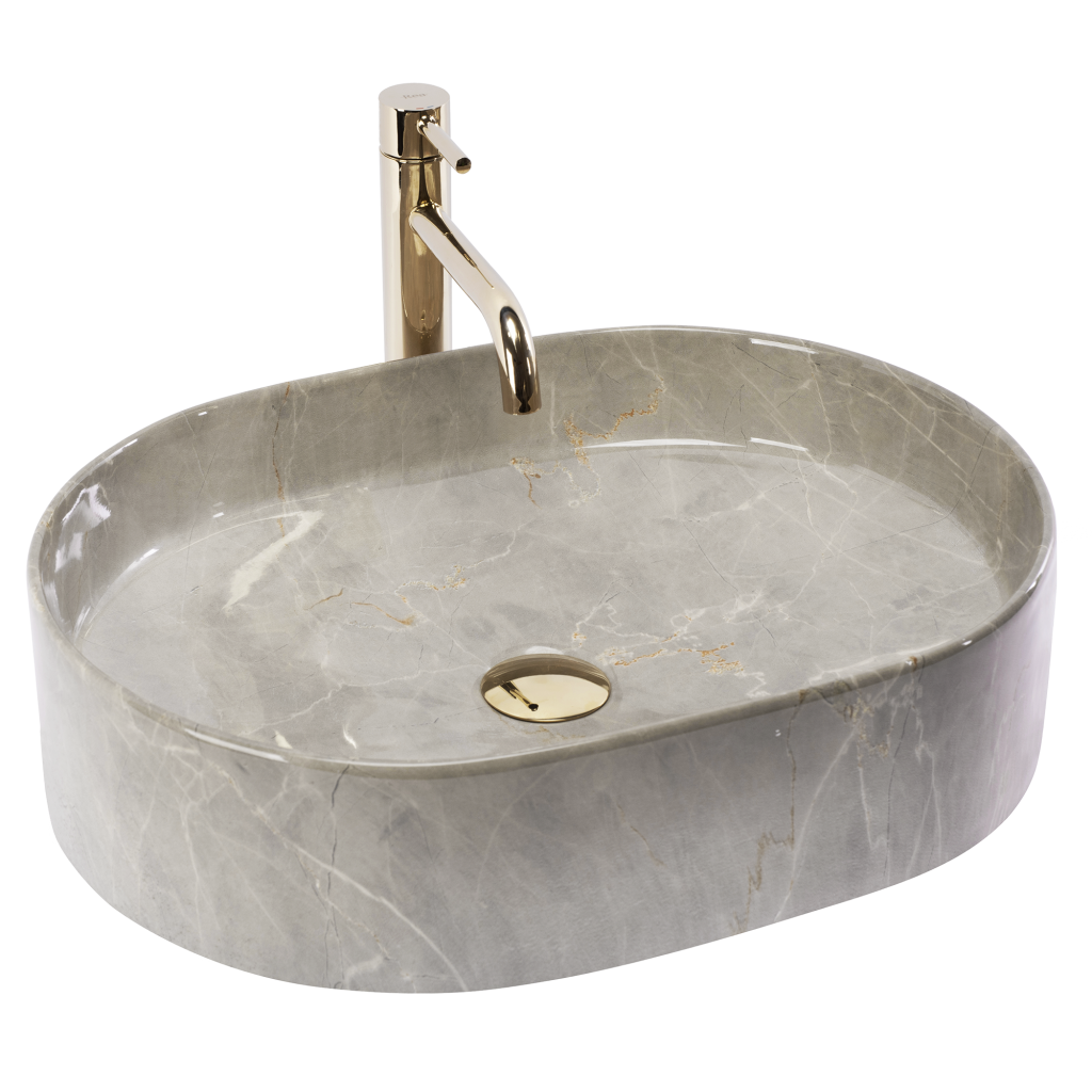 Představujeme Vám moderní nové umyvadlo na desku série Rea Nadia. Umyvadlo netradičního tvaru je vyrobeno z materiálů nejvyšší kvality a jeho vlastnosti splní veškeré vaše požadavky. Tento model ocení především zákazník, hledající funkční, ale také estetické řešení. Umyvadlo je určeno k montáži na desku, ale je možné ho kombinovat i se skřínkou. Umyvadlo v provedení, které napodobuje světlý kámen, se navíc díky speciální fázi výroby snadno čistí, je velice odolné a má jedinečný vzor.