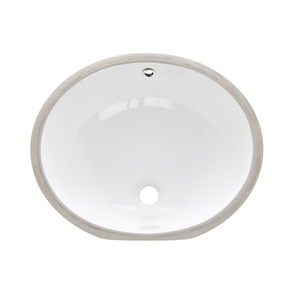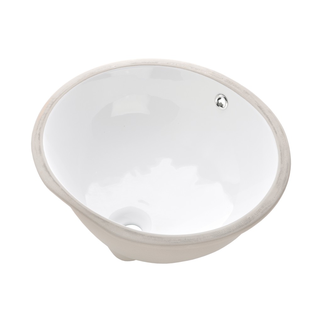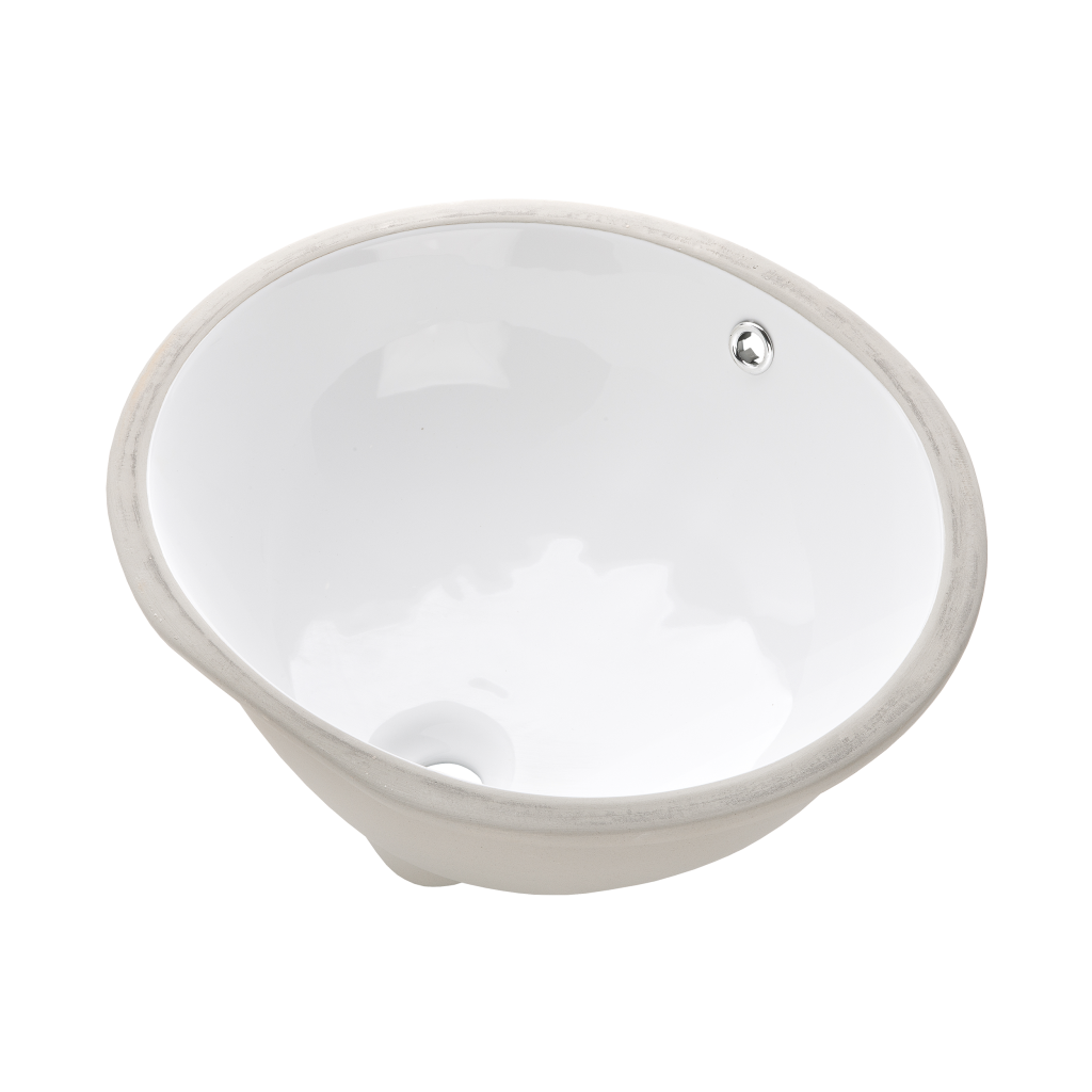 Umyvadlo pod desku, oválné, bílé. Umožňuje pohodlné uspořádání umyvadlové plochy.