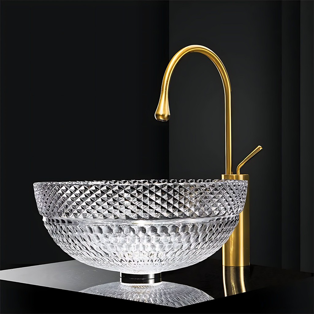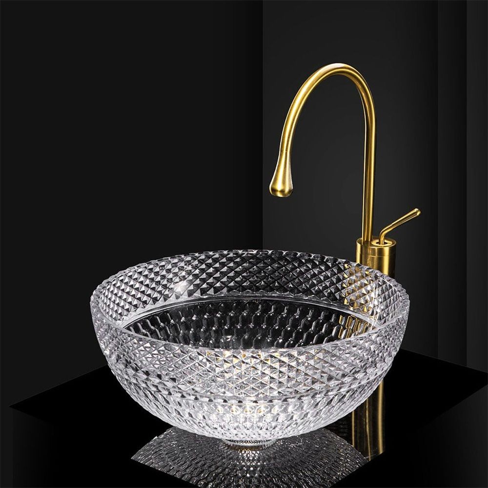 Moderní křišťálové umyvadlo ze série Cristal se bude ve vaší stylové koupelně skvěle vyjímat. Je vyrobeno z vysoce kvalitního skla a je vhodný k montáži na pracovní desku nebo skříňku. Zajímavý vizuální efekt podtrhuje světlo odrážející se v krystalech. Umyvadlo s křišťálovým povrchem se bezpochyby vyznačuje zajímavým vzorem a designem, čímž dozajista zaujme každého hosta.