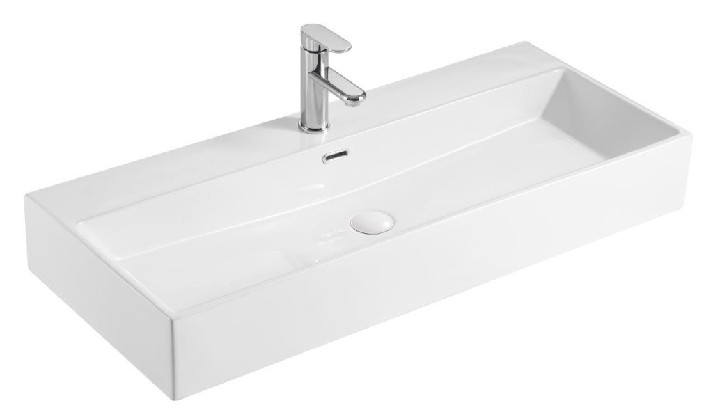 Luxusní a praktické umyvadlo. Díky chytré konstrukci jej můžeme použít jako nástěnné umyvadlo i jako umyvadlo na desku. Keramické umyvadlo je s otvorem pro vodovodní baterii a je vyrobeno ze špičkové sanitární keramiky s povrchovou úpravou PURE GLAZE*.