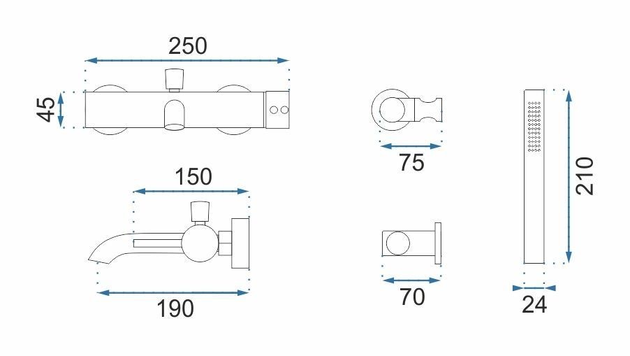 Funkční a moderní vanová baterie s příslušenstvím série Lungo. Jedná se o výrobek, který dokonale vyplní prostor vaší koupelny při zachování dokonalého vzhledu a estetiky interiéru.