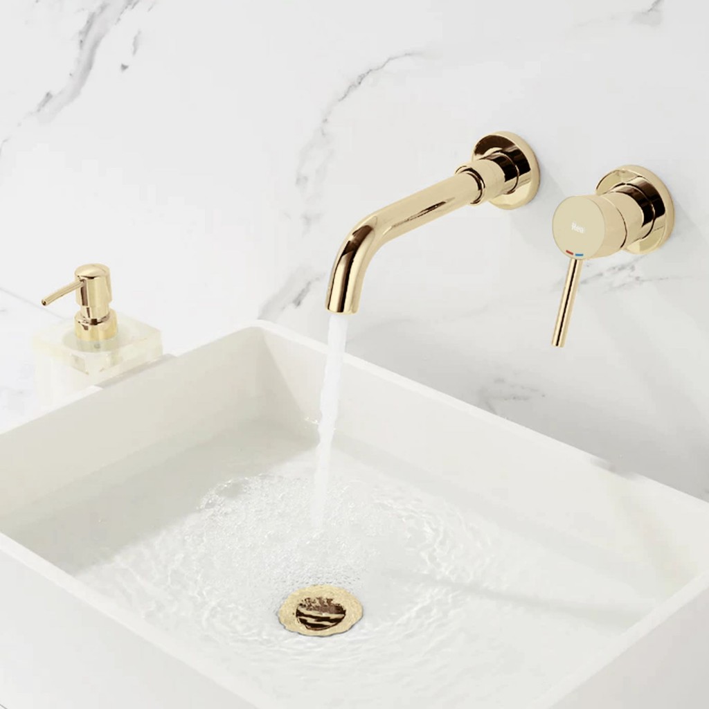 Pokud hledáte praktickou umyvadlovou baterii v podomítkové variantě, je Lungo Long tou správnou volbou. Její jednoduché a elegantní linie skvěle doplní jakoukoli koupelnu a zlatá barva dodá punc luxusu.