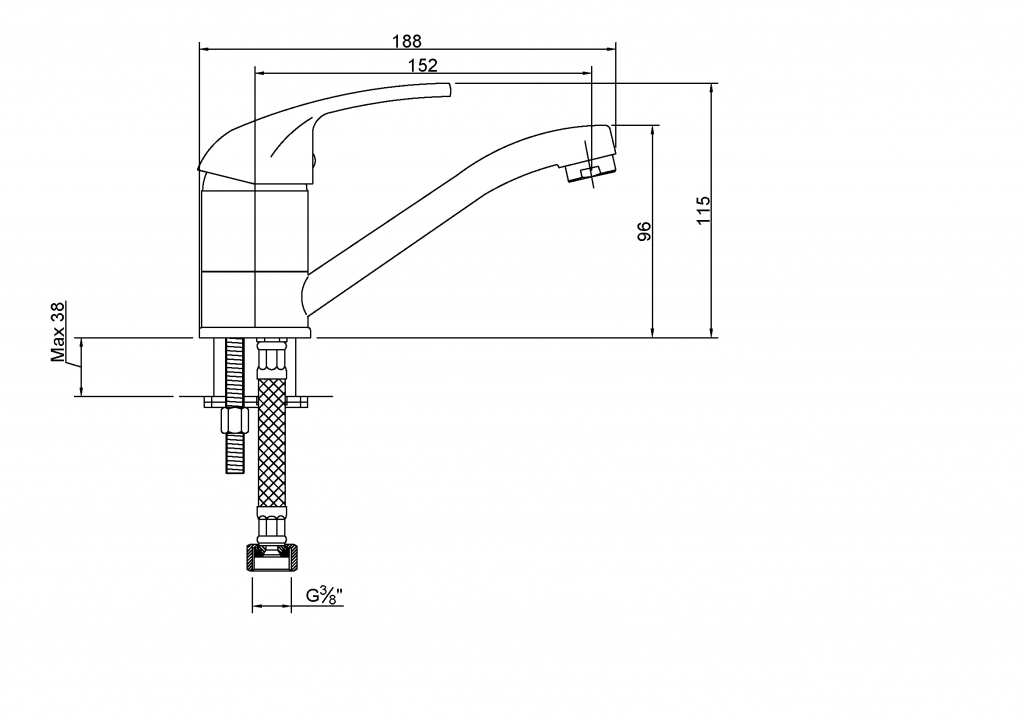- dosah výtoku u této baterie je 152 mm, výška baterie je 115 mm, výška výtoku 93 mm