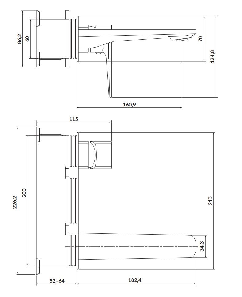 CERSANIT - Umyvadlová baterie podomítková včetně tělesa LARGA chrom (S951-386)