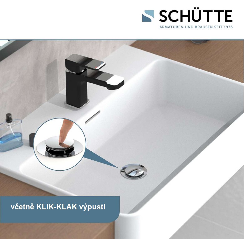 Baterie je vybavena tichou, vyměnitelnou keramickou kartuší (35 mm), která zajišťuje plynulý a přesný chod. Součástí je kovová výpusť 1 1/4" (průměr cca 4 cm) s klik-klakem, která umožňuje snadné ovládání odtoku vody. Předvrtaný otvor usnadňuje instalaci excentrické odpadní armatury.