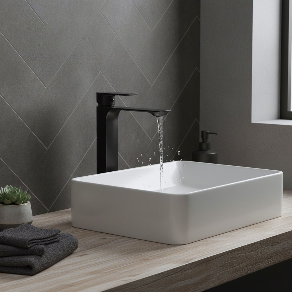 Umyvadlová páková baterie s výškou 29 cm je jako stvořená k montáži na desku vedle umyvadla (bez otvoru pro baterii). Samotná hubice je ve výšce 25 cm od desky, což vytváří dostatek prostoru pro koupi vyššího umyvadla. Byla vyrobena z odolné mosazi a díky speciální výrobní fázi je povrch odolný a snadno se čistí.