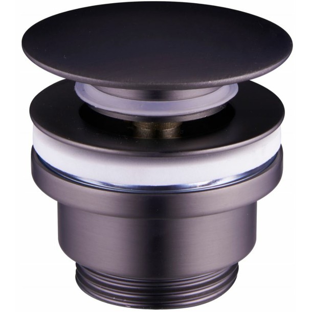 Kvalitní umyvadlová výpusť s click - clack zátkou v moderní grafitové barvě. Výpusť je s velkou zátkou a je vyrobena z kvalitní mosazi..Click-clack zátka je univerzální, hodí se jak pro umyvadla s přepadovým otvorem, tak pro ty bez otvoru pro přepad. Díky speciálnímu výrobnímu procesu je výpusť chráněna proti korozi, poškození barev a zabarvení.