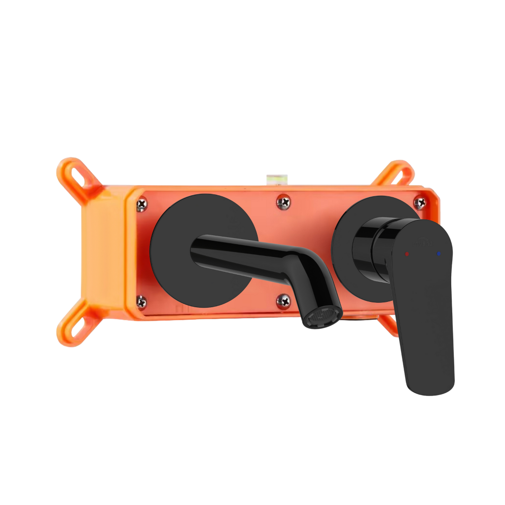 Podomítková umyvadlová baterie ALONIA v lesklé černé barvě je moderním doplňkem, který dodá eleganci každé koupelně. Její pákový nástěnný design umožňuje snadné ovládání průtoku a teploty vody, zatímco 35mm keramická baterie zajišťuje spolehlivost a odolnost. Součástí dodávky je montážní krabice pro snadnou instalaci, která zajišťuje, že je baterie připravena k okamžitému použití. Díky minimalistickému designu se baterie ALONIA dokonale hodí do moderních interiérů a kombinuje estetiku s funkčností. Vyberte si baterii, která nejen vylepší charakter vaší koupelny, ale také poskytne pohodlí a výkon po mnoho let.