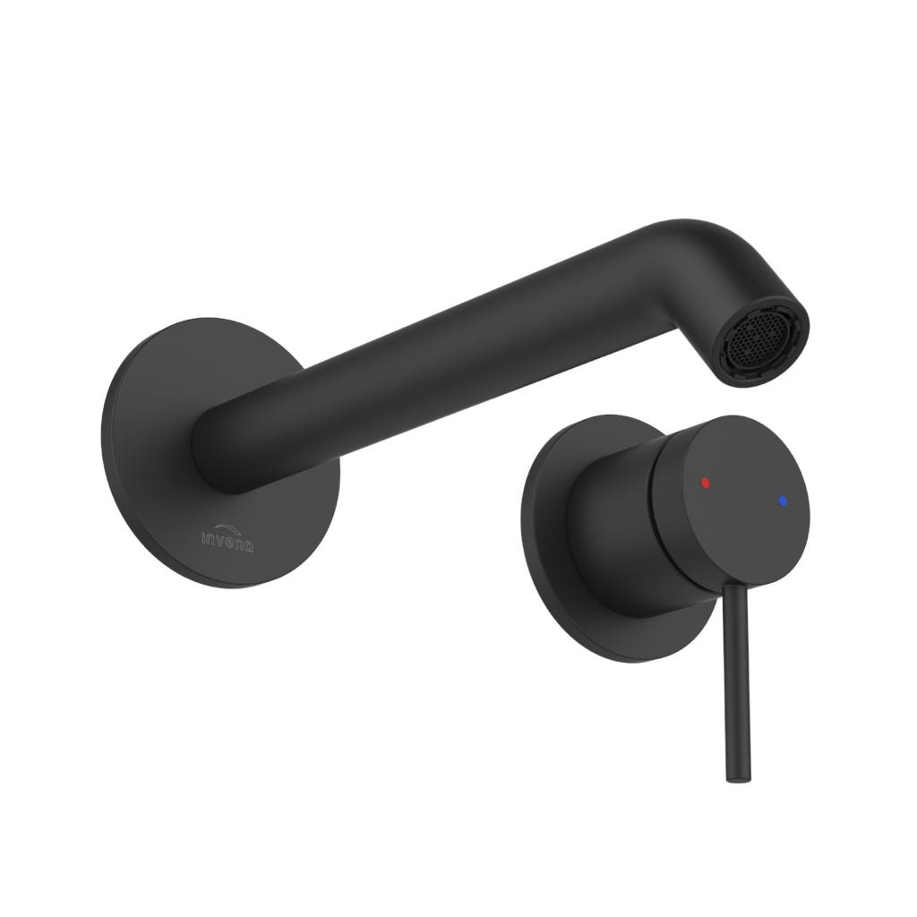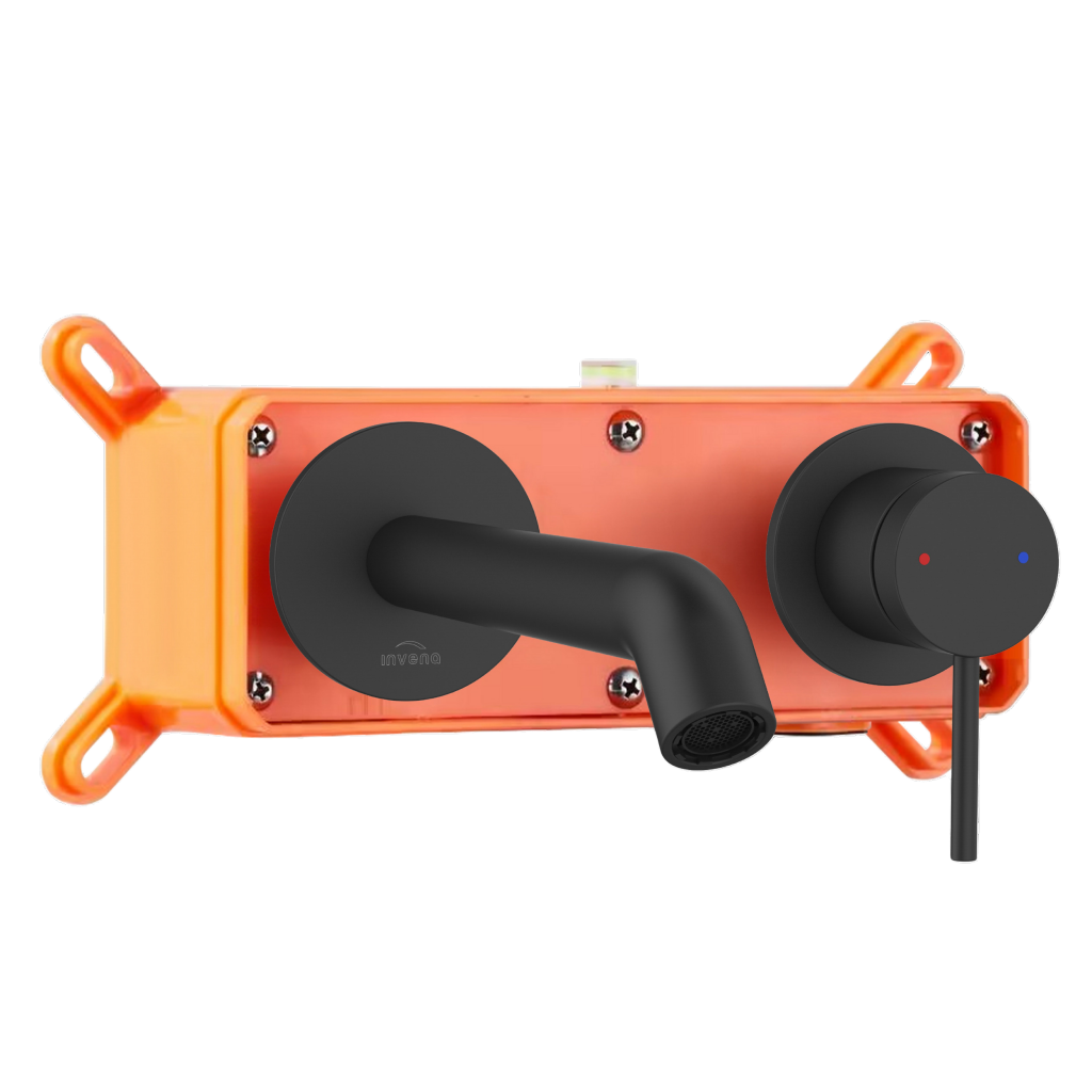 Podomítková umyvadlová baterie Kalitea v sytě černém provedení je stylovým a praktickým řešením pro moderní koupelny. Její minimalistický design s výraznou pákou ve tvaru tyče působí elegantně a zároveň zajišťuje pohodlné a intuitivní ovládání.