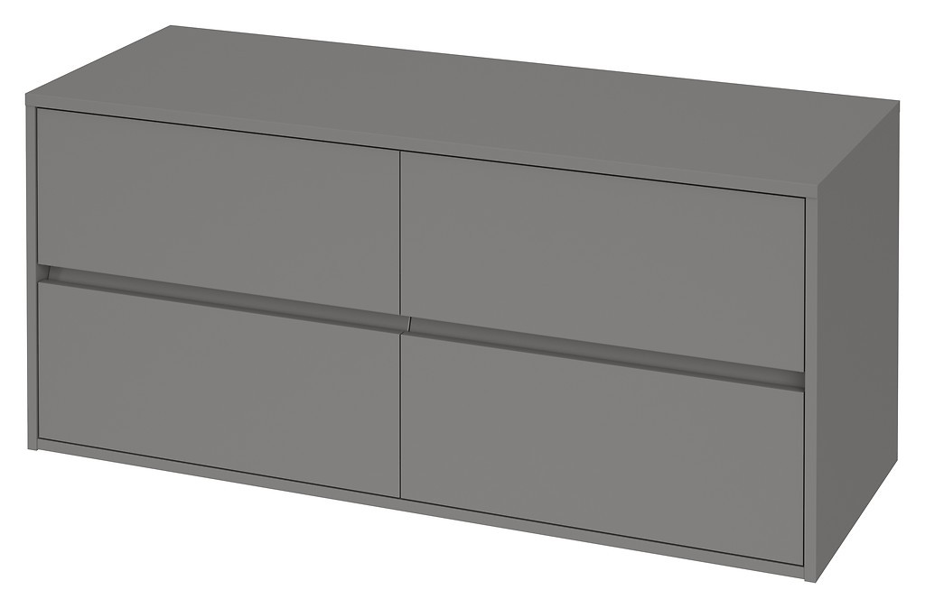 Závěsná dvojumyvadlová skříňka CREA 120 se čtyřmi výsuvnými prostornými boxy je vyrobená z dřevotřískové desky moderní technologií AQUASAFE /zvýšená odolnost proti vlhkosti/. Jejich vnitřek je pokryt elegantní šedou lněnou strukturou. Skříňka působí elegantním vzhledem díky zapuštění přední části a využití skrytých madel. Zásuvky jsou vybavené pojezdy "HAFELE" s plným výsuvem a tichým uzavíracím systémem, který zvyšuje komfort používání.