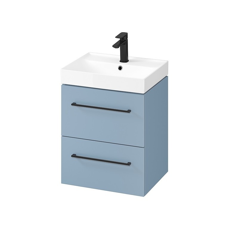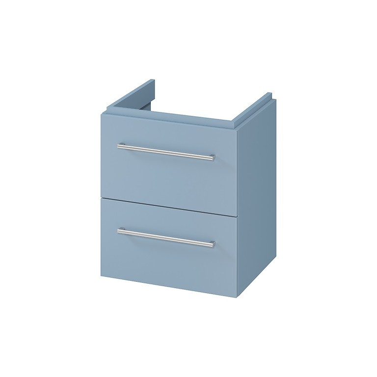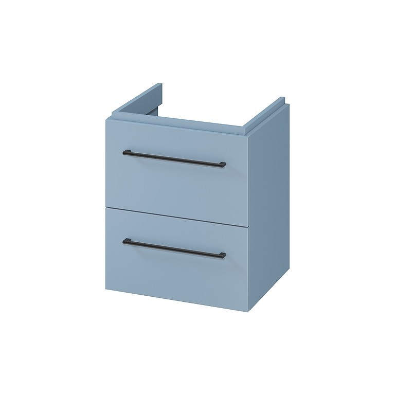 Umyvadlová skříňka LARGA 50 s šedým vnitřkem dvou prostorných zásuvek s měkkým zavíráním soft-close. Dřevotřísková deska, ze které je skříň vyrobena, má certifikát FSC MIX 70% SGSCH-COC-007574. Nábytková frézovaná madla lze vybrat ve třech barvách (stříbrné, zlaté, černé), k zakoupení samostaně, není součástí skříňky.