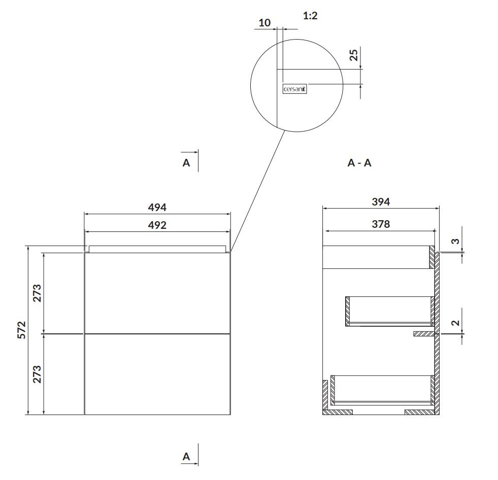 TIP: V případě, že budete skříňku kombinovat se zápustným umyvadlem je potřeba upravit vrchní šuplík, aby byl dostatečný prostor pro sifon. Je potřeba objednat montážní prvek - S599-0182
