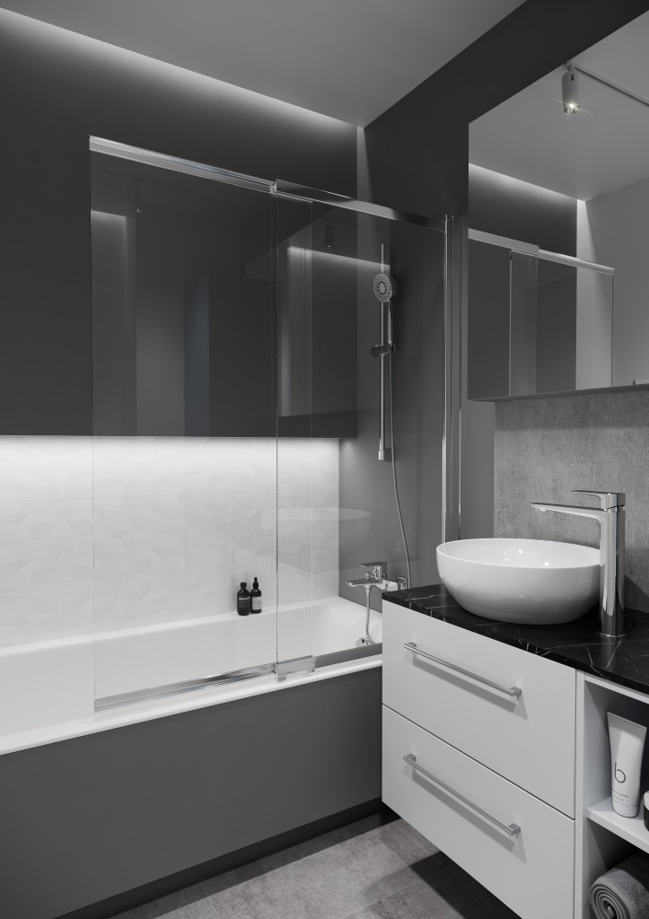 Vanovou a sprchovou zónu lze zařídit pohodlnou vanou a zástěnou nebo sprchovým koutem. Obdélníkové vany z řady LARGA potěší svým geometrickým vzorem a zvýšeným komfortem koupání díky ergonomickému opěráku. Sprchové kouty a zástěny si můžete vybrat s černými nebo chromovými profily. U čtvercových nebo obdélníkových sprchových koutů LARGA se při výběru vaničky TAKO SLIM (bílá, šedá nebo černá) soustředíme na skutečné kouzlo decentní elegance.