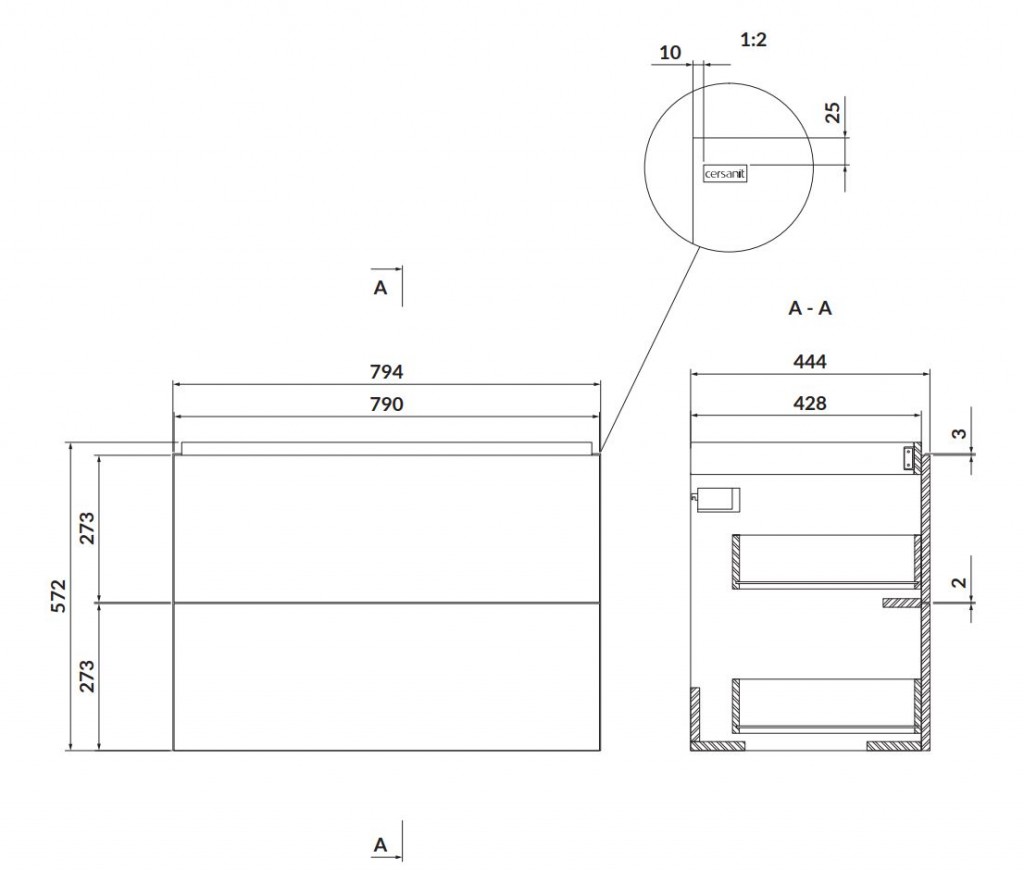 TIP: V případě, že budete skříňku kombinovat se zápustným umyvadlem je potřeba upravit vrchní šuplík, aby byl dostatečný prostor pro sifon. Je potřeba objednat montážní prvek - S599-0182