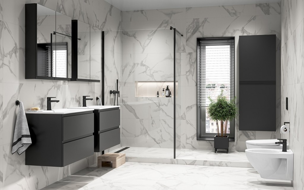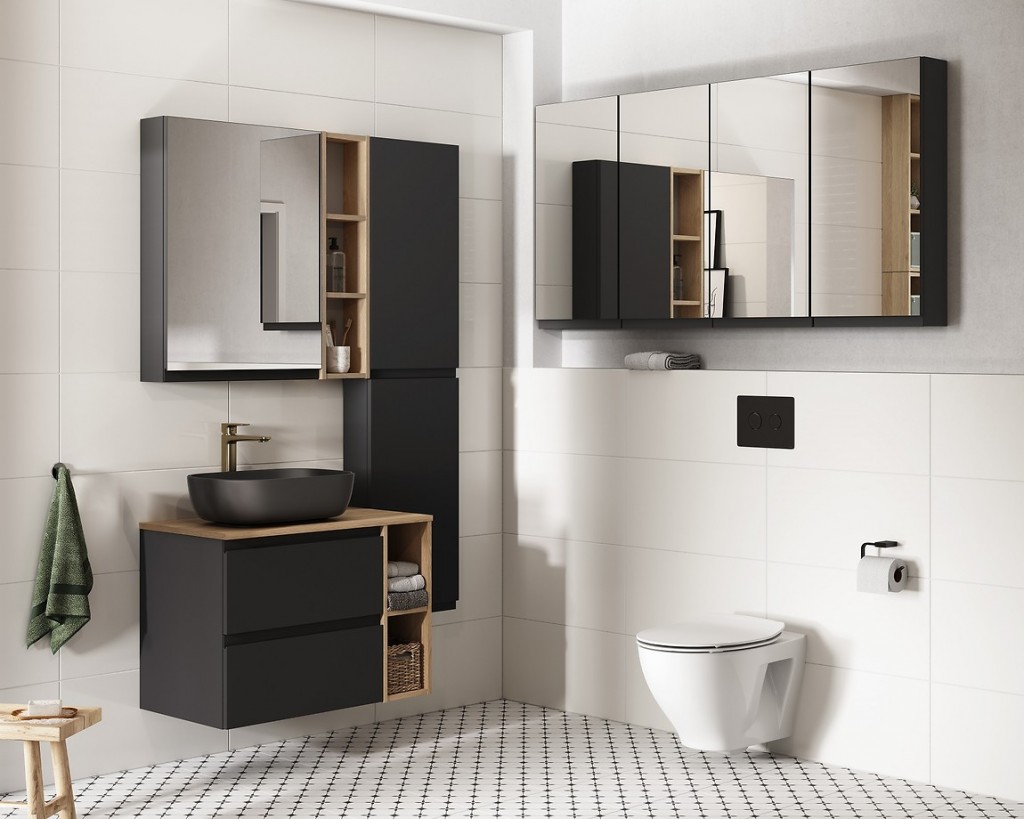 vynikající volbou pro lidi, kteří oceňují klasickou elegantní koupelnu. Dřevěné prvky jsou vyrobeny technologií AQUASAFE , která je navíc chrání před vlhkostí v koupelně.
