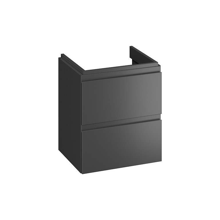 Umyvadlová skříňka MODUO 50 s jednoduchým moderním tvarem je vyrobena z lakované nábytkové desky antracitové barvy s matným povrchem. Skříňky série MODUO mají pohodlné frézované úchyty, které vytváří dekorativní prvky a umožňují jednoduché otevírání a zavírání dveří nebo šuplíků. Zásuvky jsou vybaveny systémem měkkého zavírání. Skříňka je určena pro montáž s nábytkovým umyvadlem MODUO 50.