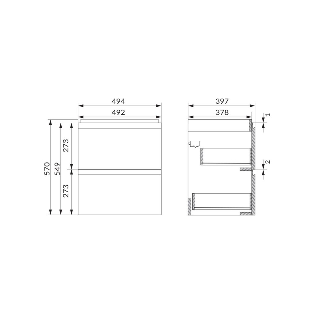 Umyvadlová skříňka MODUO s moderním, minimalistickým tvarem je vyrobena z kašmírové lakované desky s matnou povrchovou úpravou. Tento model je vybaven pohodlnými frézovanými úchyty a systémem tlumeného dovírání a je uzpůsoben pro montáž s nábytkovým umyvadlem MODUO 50. Prodává se ve verzi pro svépomocnou montáž. Tato skříňka má dvě plné zásuvky, doporučujeme použít prostorově úsporný sifon.