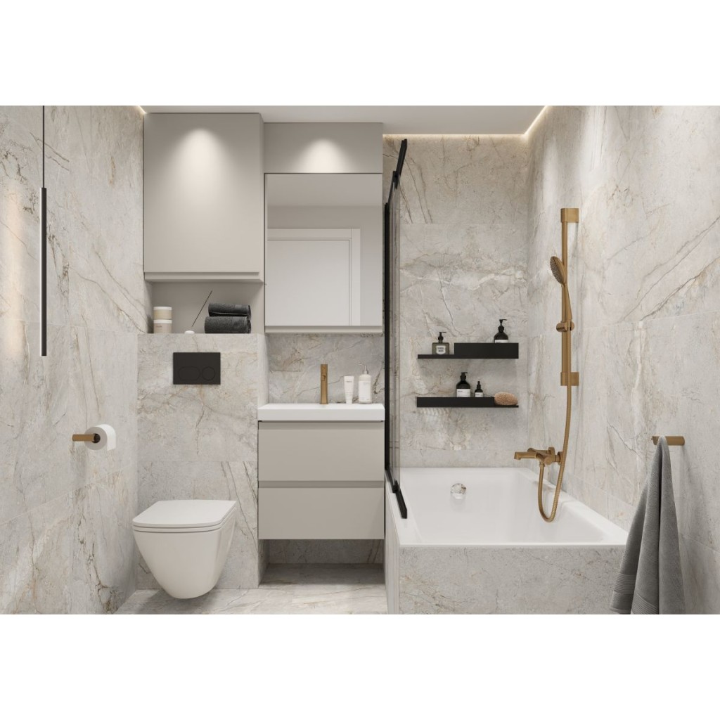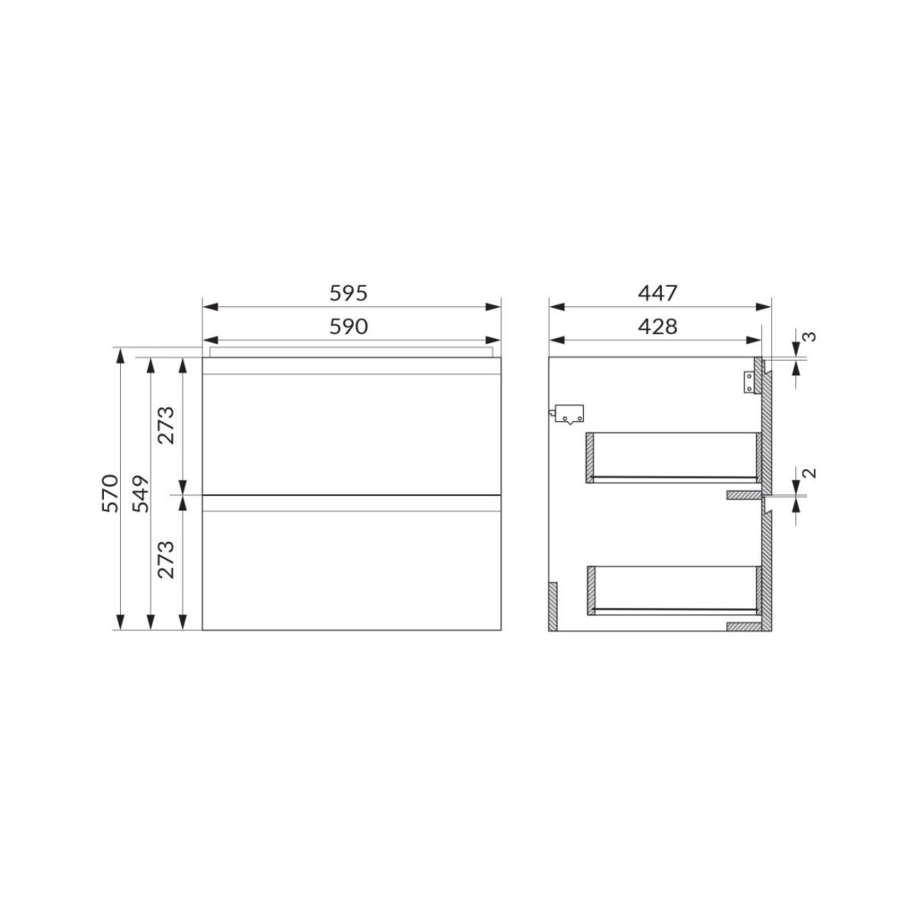 Umyvadlová skříňka MODUO s moderním, minimalistickým tvarem je vyrobena z kašmírové, lakované desky s matnou povrchovou úpravou. Tento model je vybaven pohodlnými frézovanými úchyty a systémem tlumeného dovírání a je uzpůsoben pro montáž s nábytkovým umyvadlem MODUO 60. Prodává se ve verzi pro svépomocnou montáž. Tato skříňka má dvě plné zásuvky. Doporučujeme použít prostorově úsporný sifon.