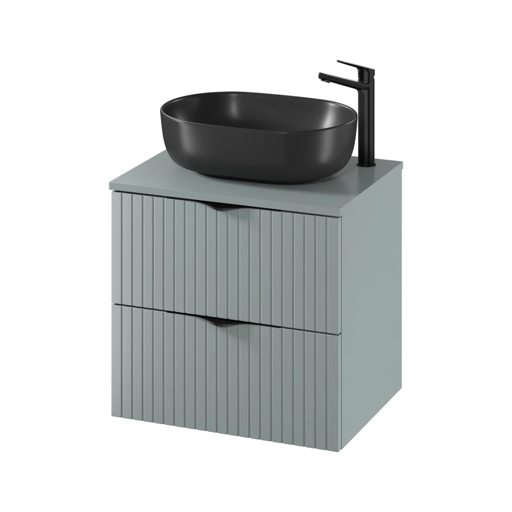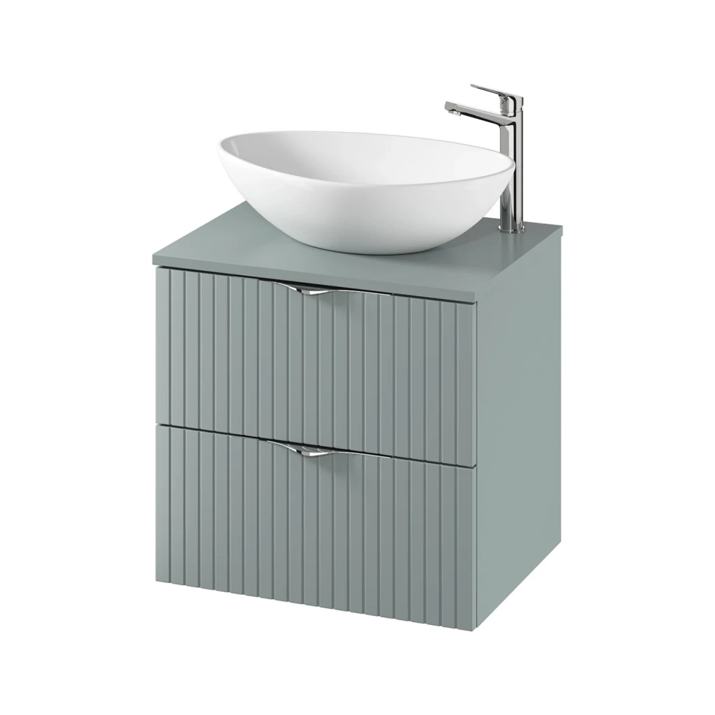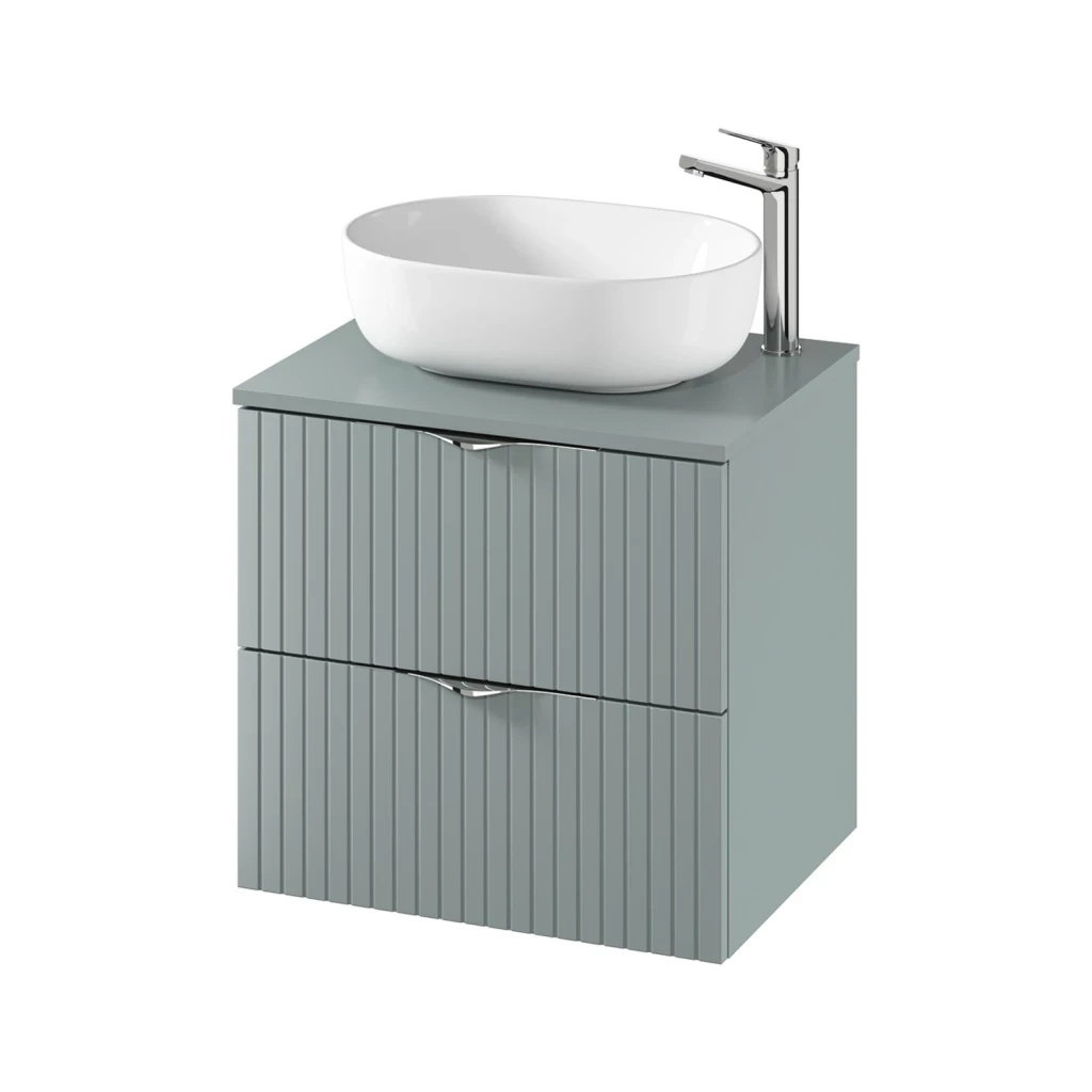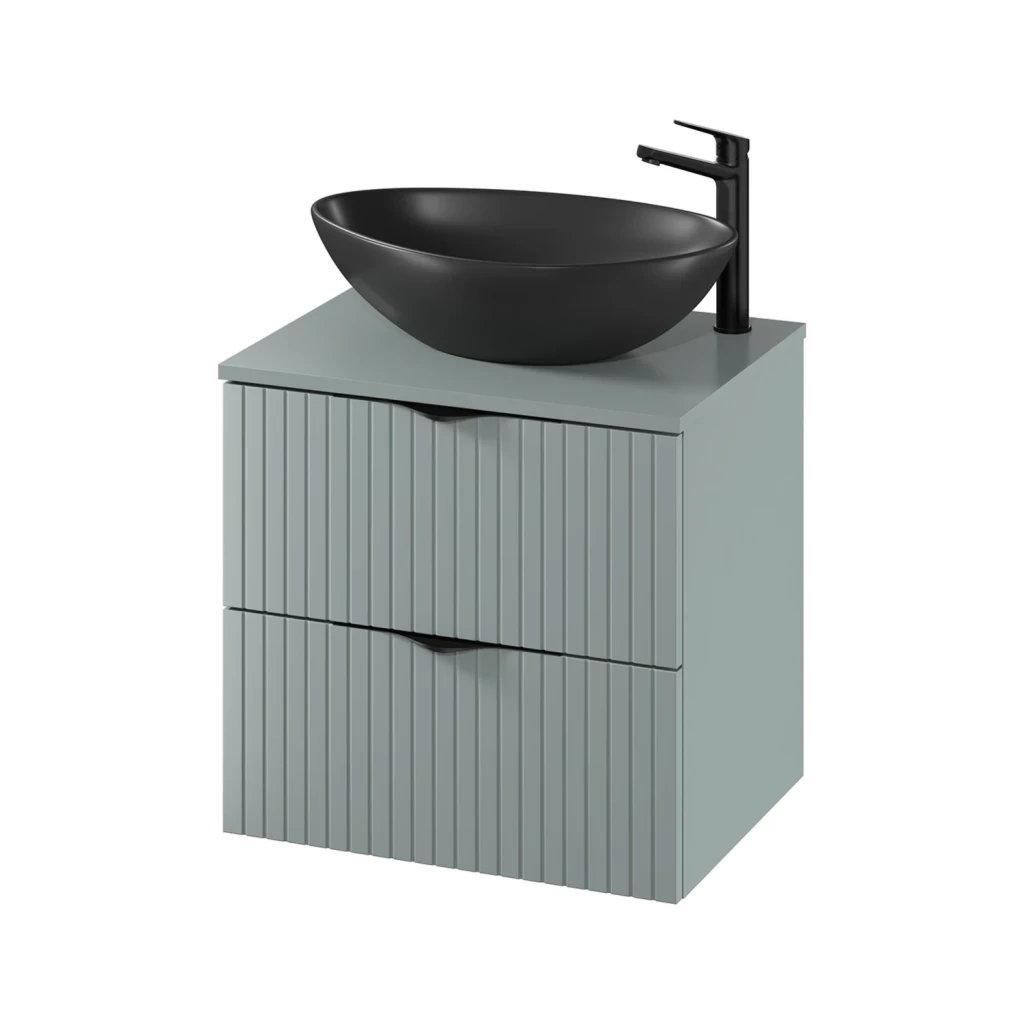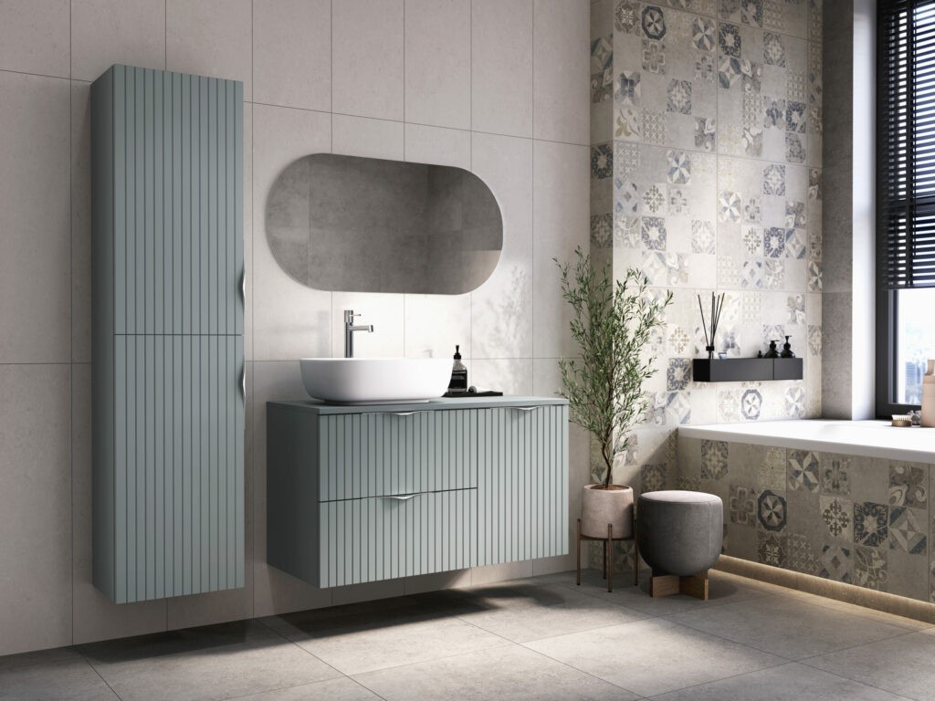 K této modulové nábytkové sestavě se hodí umyvadlo na deku se stojánkovou baterií vysoké verze, jelikož se umístí na desku vedle umyvadla. Vhodné je pak doplnit umyvadlovou výpustí a nábytkovým úsporným sifonem, který je navržen tak, aby šetřil místo pod umyvadlem.
