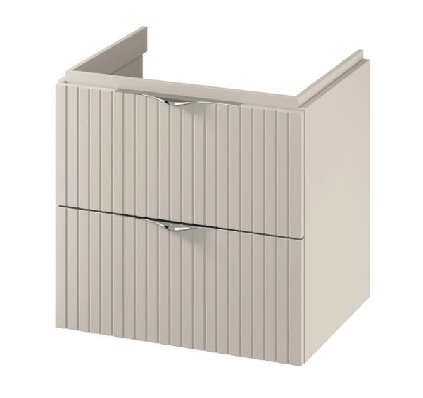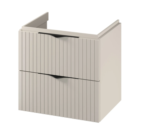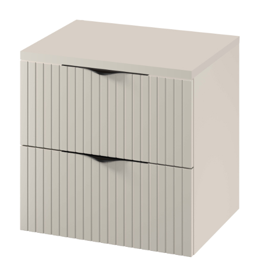 Představujeme, vám závěsnou umyvadlovou skříňku TIRSO pro umístění pod desku stejné série. Vyrobená je z 16 mm dřevotřískové desky, je vybavená dvěma prostornými zásuvkami se systémem tichého dovírání. Přední čela šuplíků jsou frézovaná a doplnit skříňku můžete ocelovými úchytkami, které jsou dodávané v barevném provedení chrom a černá mat.