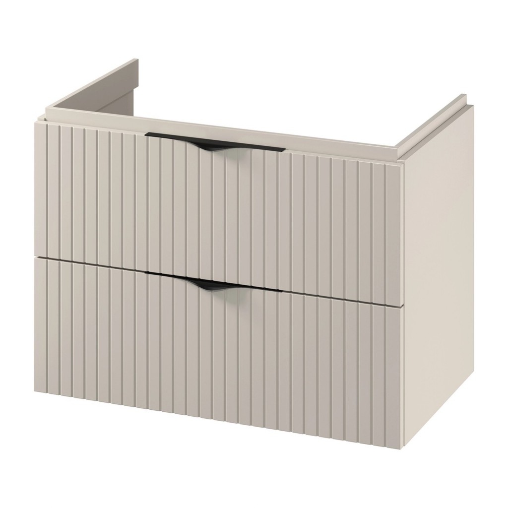 Představujeme, vám závěsnou umyvadlovou skříňku TIRSO pro umístění pod desku stejné série. Vyrobená je z 16 mm dřevotřískové desky, je vybavená dvěma prostornými zásuvkami se systémem tichého dovírání. Přední čela šuplíků jsou frézovaná a doplnit skříňku můžete ocelovými úchytkami, které jsou dodávané v barevném provedení chrom a černá mat.