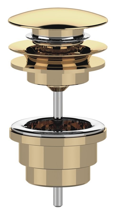 SAPHO - Umyvadlová výpust 5/4“, click-clack, velká zátka, 10-65, zlato (CV100217)