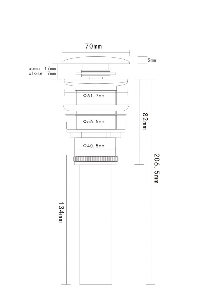 Umyvadlová výpusť s click-clack systémem. Výpusť je s chromovou zátkou a je určena pro umyvadla bez přepadu.