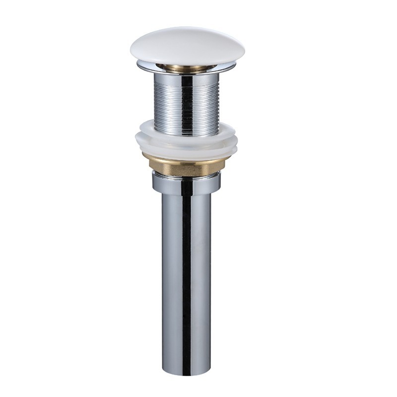 Umyvadlová výpusť s click-clack systémem. Výpusť je s bílou keramickou zátkou a je určena pro umyvadla bez přepadu.