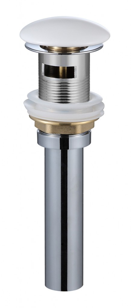 Umyvadlová výpusť s click-clack systémem. Výpusť je s bílou keramickou zátkou a je určena pro umyvadla s přepadem.