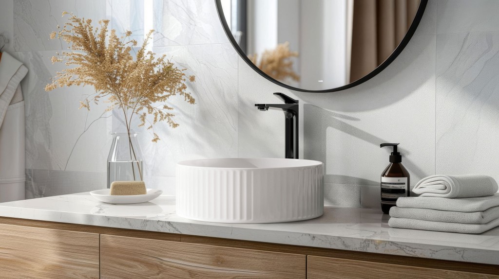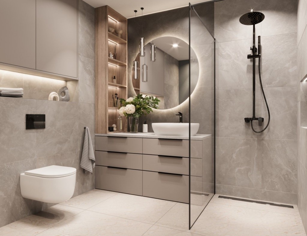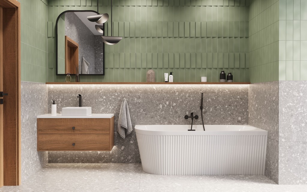 Díky svému čistému tvaru a lesklému černému povrchu se baterie ALONIA skvěle hodí do moderních i elegantních koupelnových interiérů.