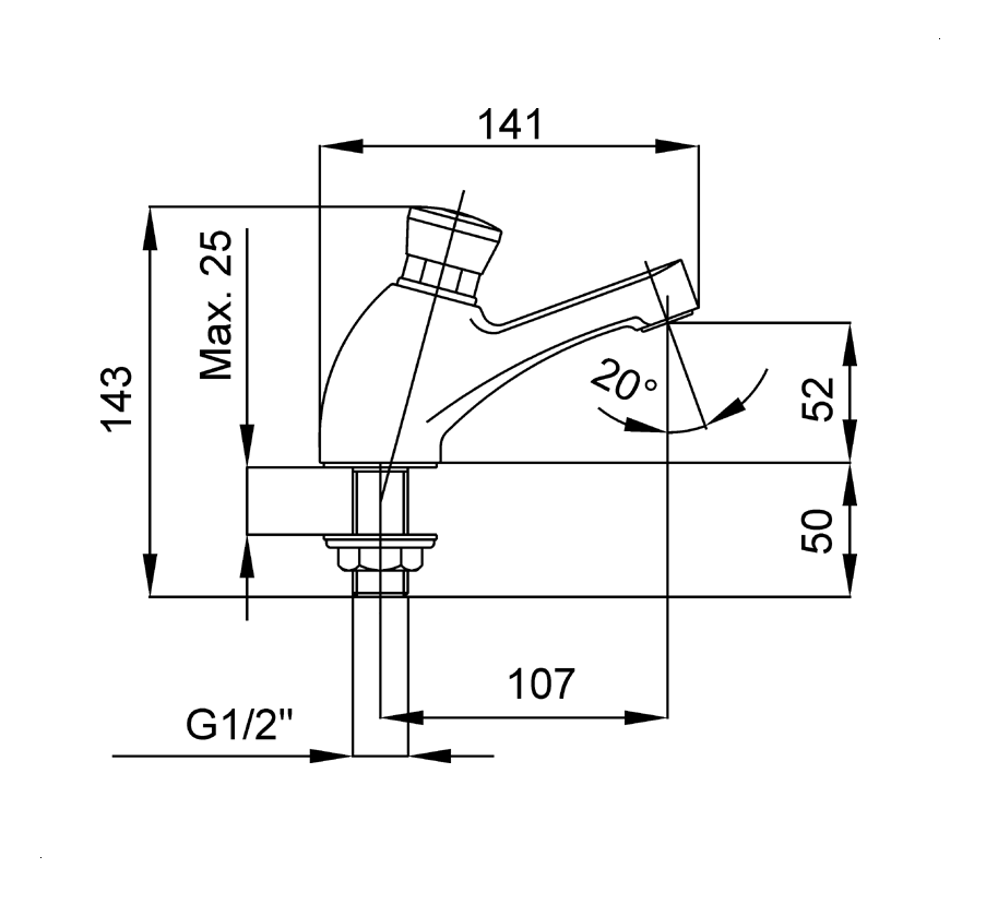 Umyvadlový ventil pro jednu vodu, samouzavírací
