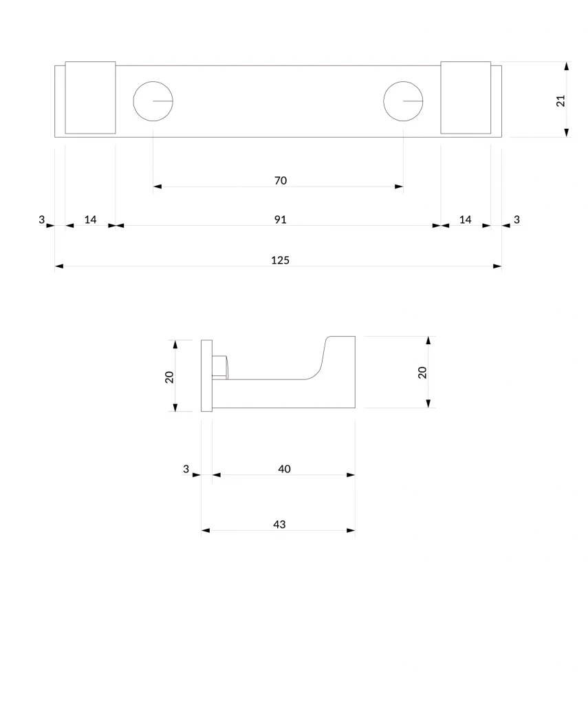 - šířka: 13 cm, výška: 2 cm, vzdálenost od zdi: 4 cm