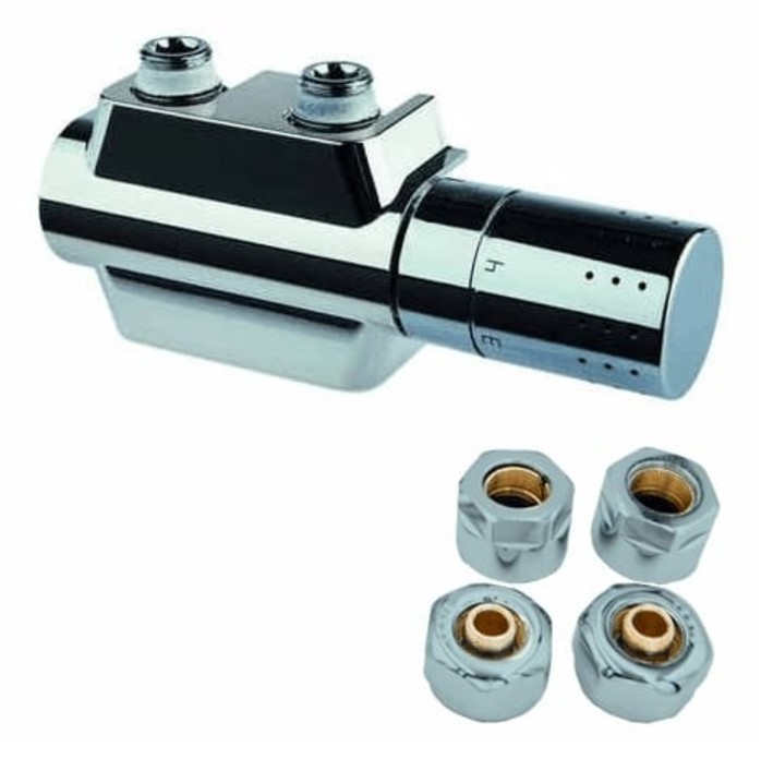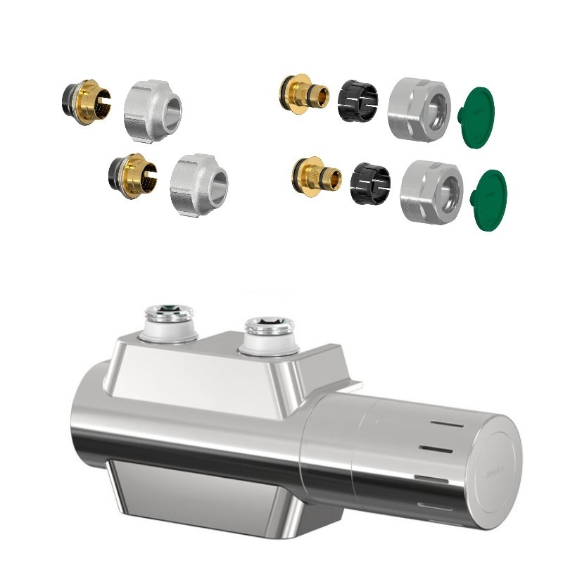 Připojovací armatura UNI-SADA s integrovaným termostatickým ventilem pro otopná tělesa s vnitřním závitem 1/2" nebo s vnějším závitem 3/4" Eurokonus. Je vhodná pro koupelnová a otopná tělesa se středovým dopojením. Armatura kombinuje rohový a přímý tvar ventilu a má universální pravé nebo levé připojení hlavice. Sadu nabízíme ve třech barvách (chrom, černá a bílá). Ventily dodáváme včetně svěrného šroubení na Cu i na PEX-AL-PEX.