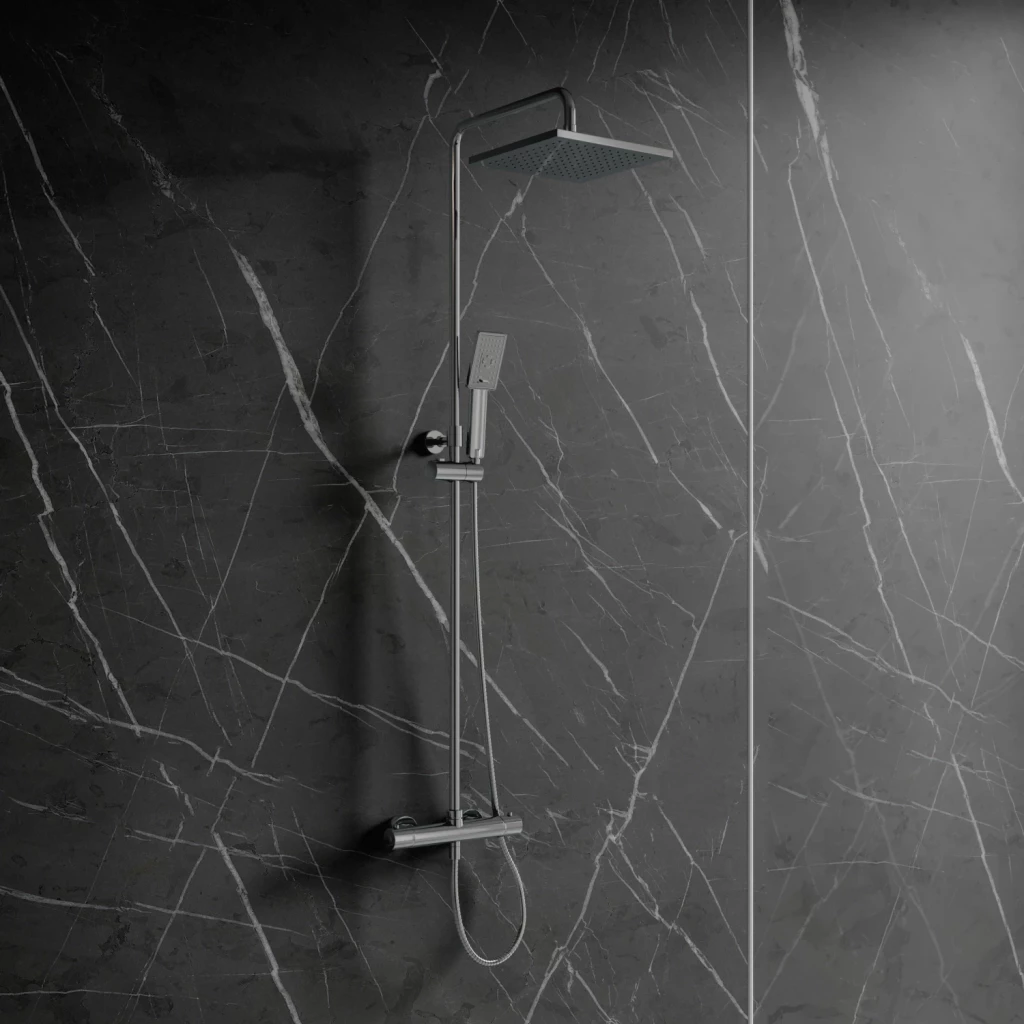 - termostatická sprchová baterie s uzávěrem teploty vody 38 °C
