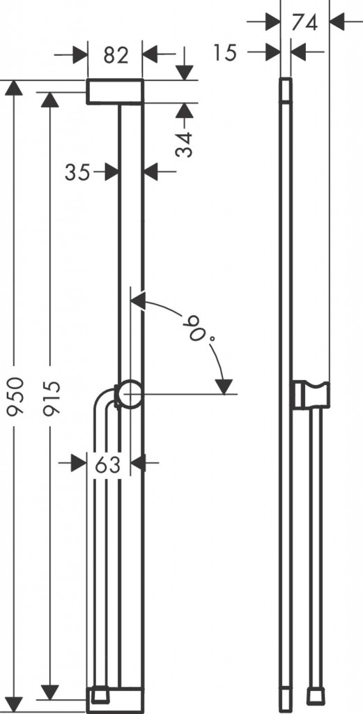 Sprchová tyč Unica E Puro 90, s hadicí a držákem