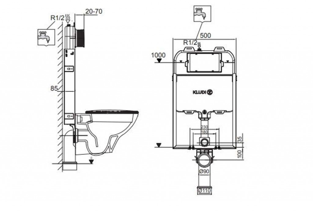 - Kompatibilní s KLUDI-UNIFIX splachovacími tlačítky