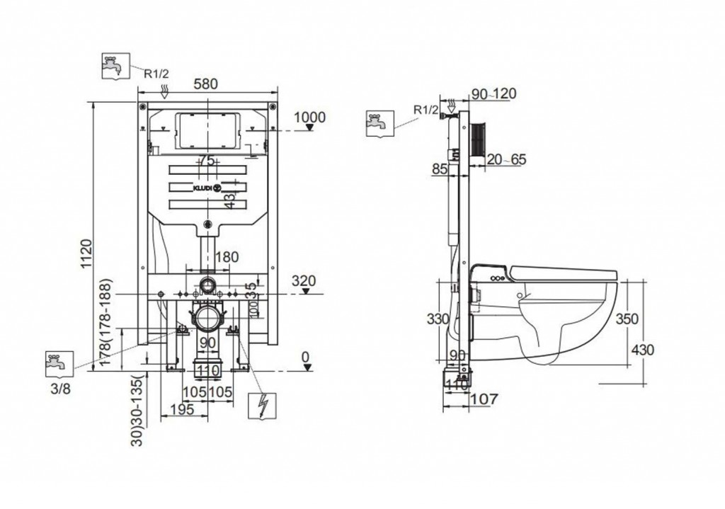 KLUDI-UNIFIX MODUL Splachovací podomítková nádržka s rámem pro závěsný smart klozet