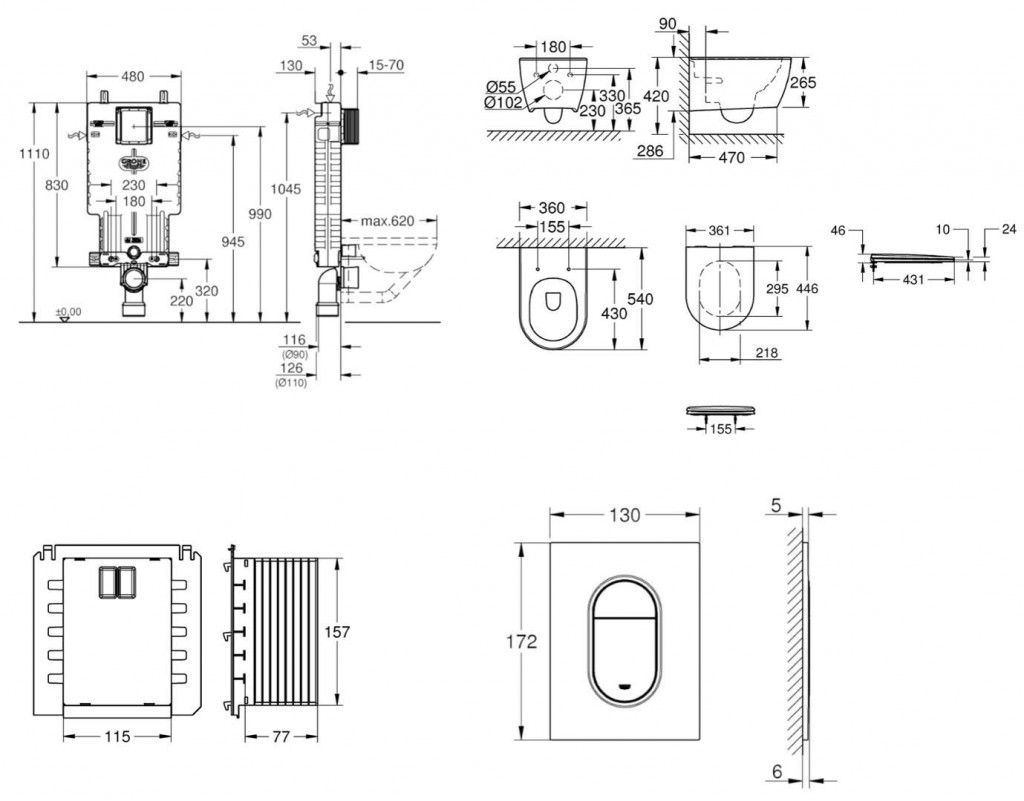- pro vertikální nebo horizontální použití splachovacích tlačítek