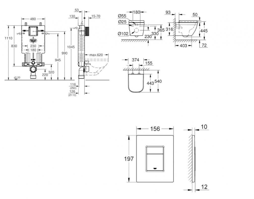 - pro vertikální nebo horizontální použití splachovacích tlačítek