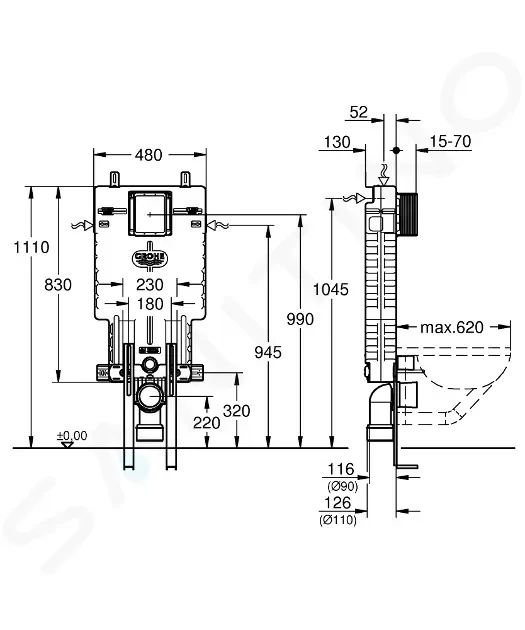 - příprava pro instalaci sprchové toalety pomocí sady 40 899 000 (je nutné objednat zvlášť)