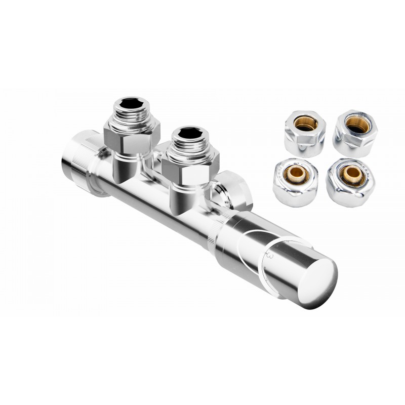 Universální termostatická (pravý i levý) sada HYBRID je určen pro napojení koupelnových radiátorů s vývodem tzv. na střed radiátorů s roztečí 50 mm. Ventil je určen pro připojení radiátorů na rozvody TUV s vývodem ze zdi. Sada je včetně svěrného šroubení Ø 15x1 (Cu) a Ø 16x2 (Alpex). Přívod je vždy na straně termostatické hlavice. Elektrickou topnou tyč lze instalovat na libovolnou stranu radiátoru, nelze instalovat do ventilu. Ventil dodáváme ve třech barevných variantách (chrom, bílá a černá barva).