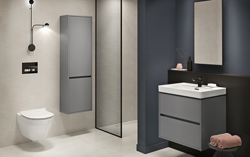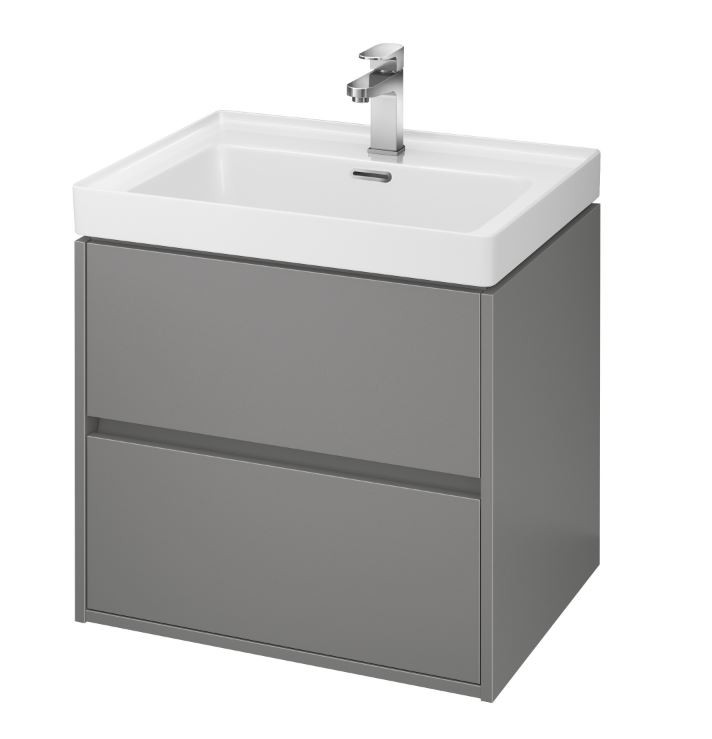Závěsná umyvadlová skříňka CREA 60 se dvěma výsuvnými boxy v šedém matném provedení a elegantním šedým lněným vnitřkem. Vyrobená je z dřevotřískových desek s moderní technologií AQUASAFE /zvýšená odolnost proti vlhkosti/. Skříňka působí elegantním vzhledem díky zapuštění přední části a využití skrytých madel. Zásuvky jsou vybavené pojezdy "HAFELE" s plným výsuvem a tichým uzavíracím systémem, který zvyšuje komfort používání. Skříňka lze kombinovat s umyvadly CREA, MODUO, CITY, COMO a COLOUR.